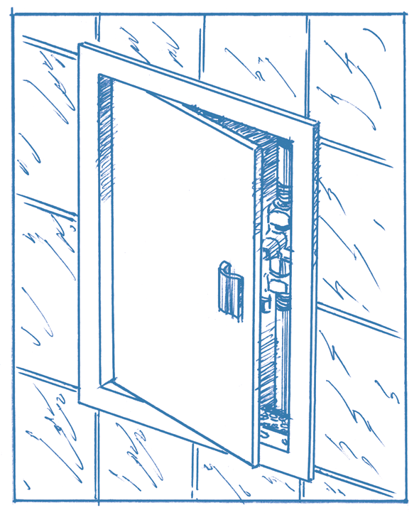 - Sử dụng để dễ dàng thao tác với các van nước, gas, khí nén của hệ thống được ẩn bên trong tường.