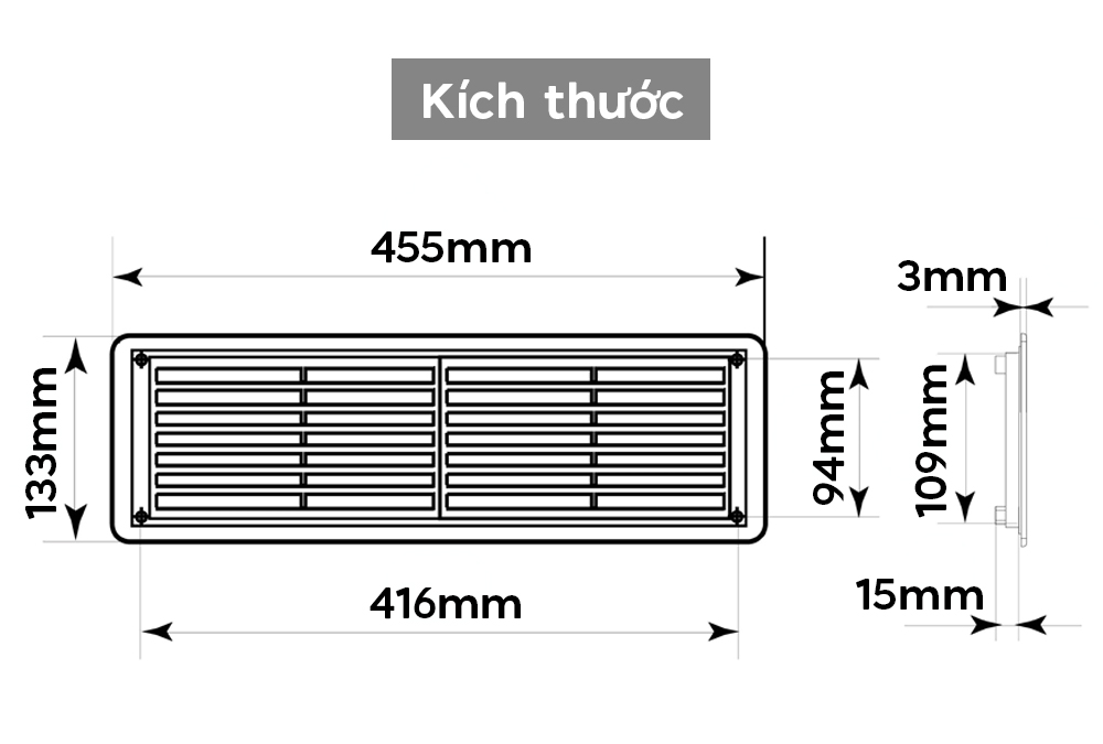 Kích thước lọt lòng: 416x109mm