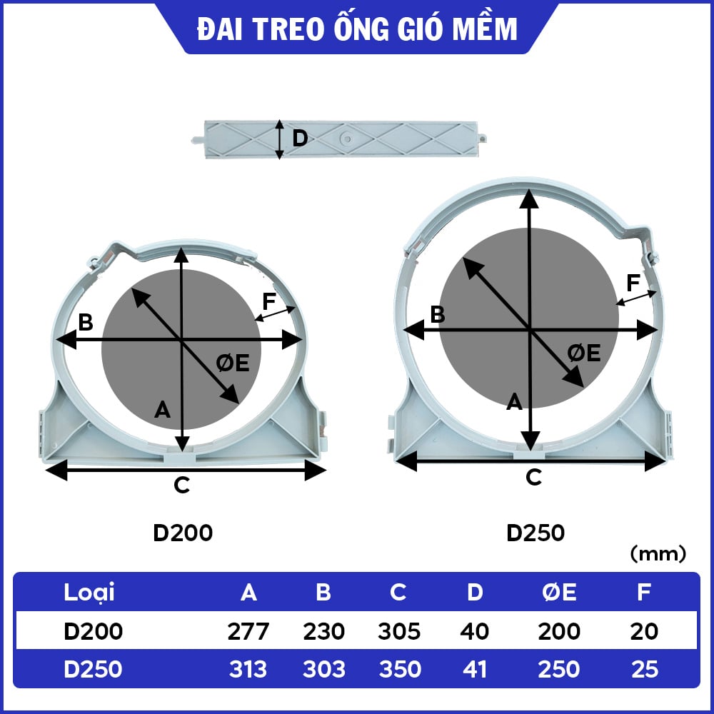 Đai treo ống gió mềm có bảo ôn - D200/D250 là giải pháp lý tưởng để treo ống gió mềm cách nhiệt lên trần nhà. Với thiết kế chắc chắn, dễ thi công và tính linh hoạt cao, sản phẩm giúp tối ưu hóa hệ thống thông gió và đảm bảo an toàn, bền vững cho công trình.