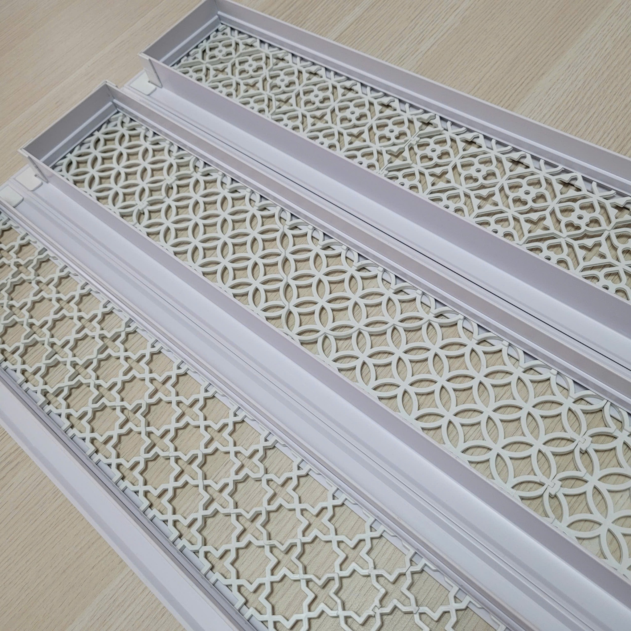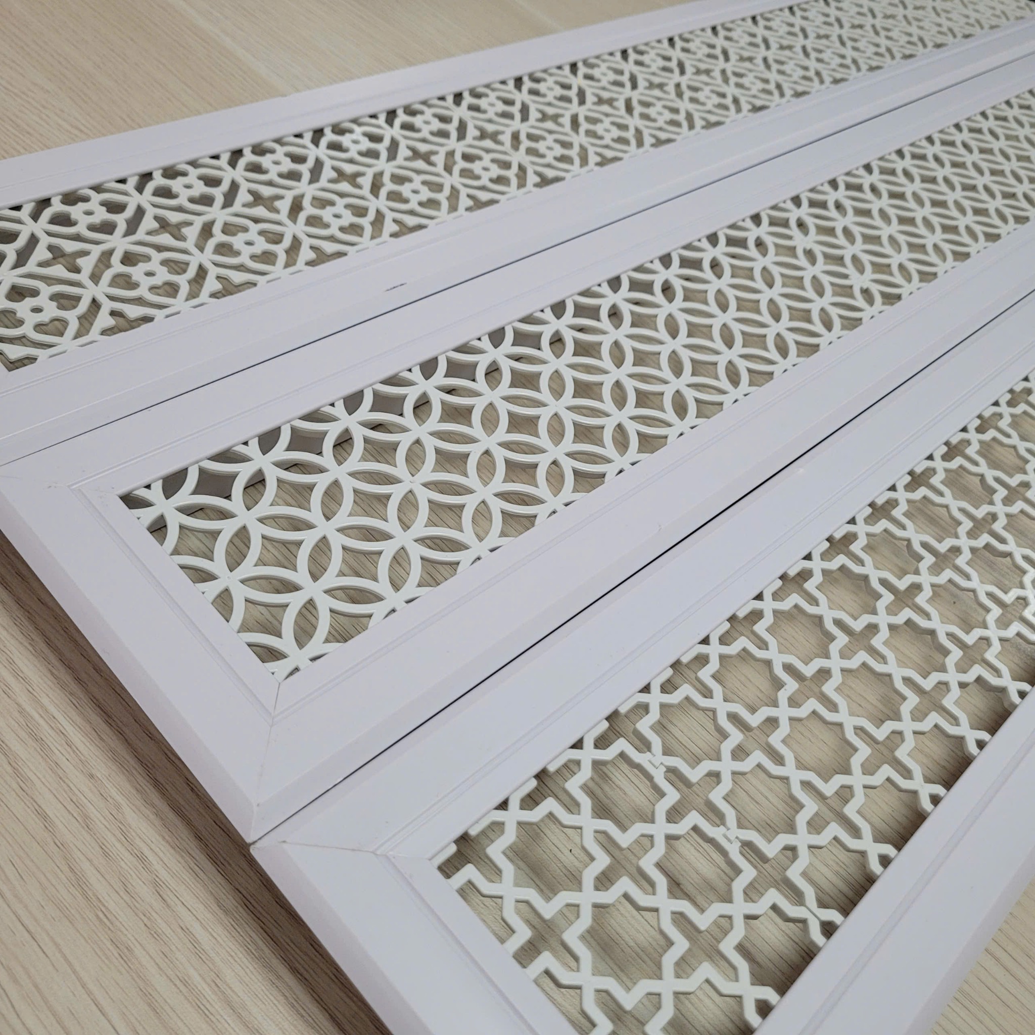 Miệng gió Hoa Văn có thiết kế hình chữ nhật, thường được dùng để kiểm soát điều chỉnh lưu lượng không khí giúp điều hòa không khí và tạo điều kiện thoải mái cho môi trường. Với thiết kế mỏng, tối giản và hiện đại, kích thước, mẫu mã đa dạng phù hợp với nhiều phong cách kiến trúc, chiều dài và rộng có thể gia công theo yêu cầu đặt hàng, miệng gió Hoa Văn còn được dùng để trang trí thêm cho trần giúp tăng thêm tính thẩm mỹ cho căn phòng.