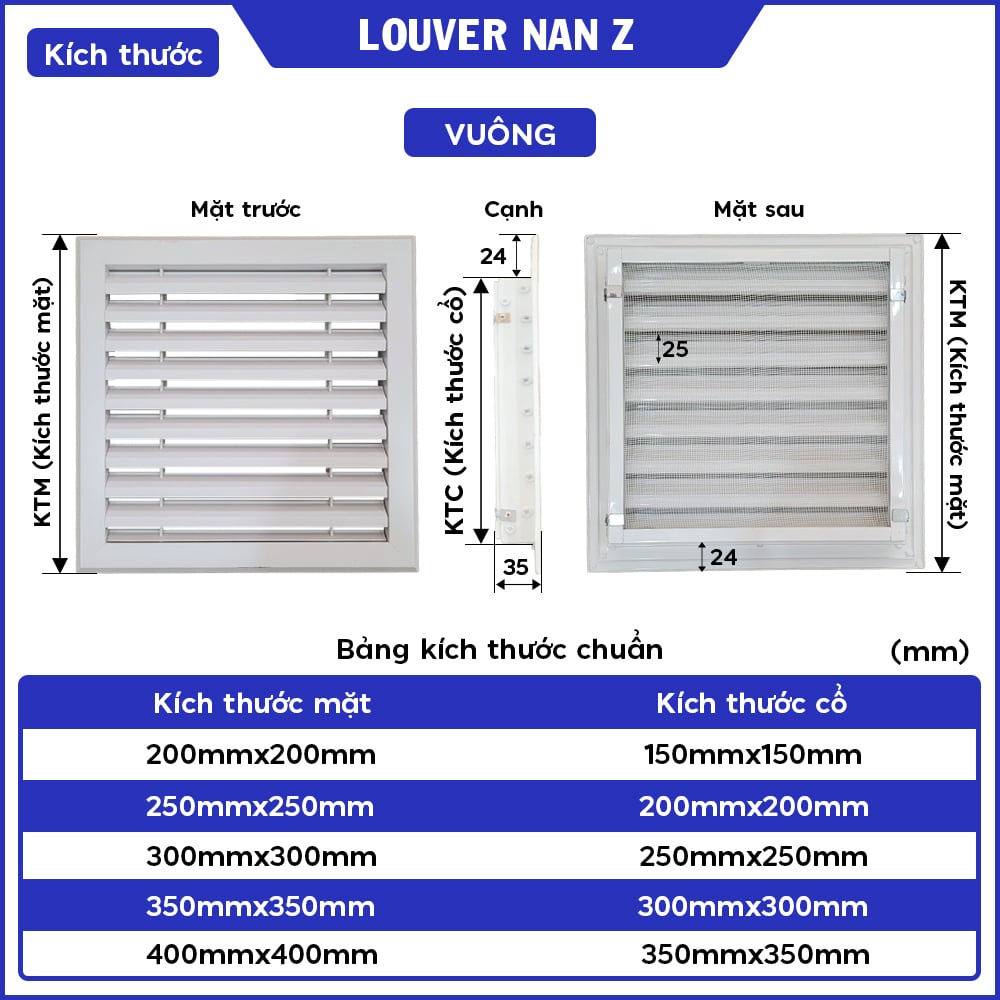 MIỆNG GIÓ LOUVER NAN Z KÈM LƯỚI CHẮN CÔN TRÙNG