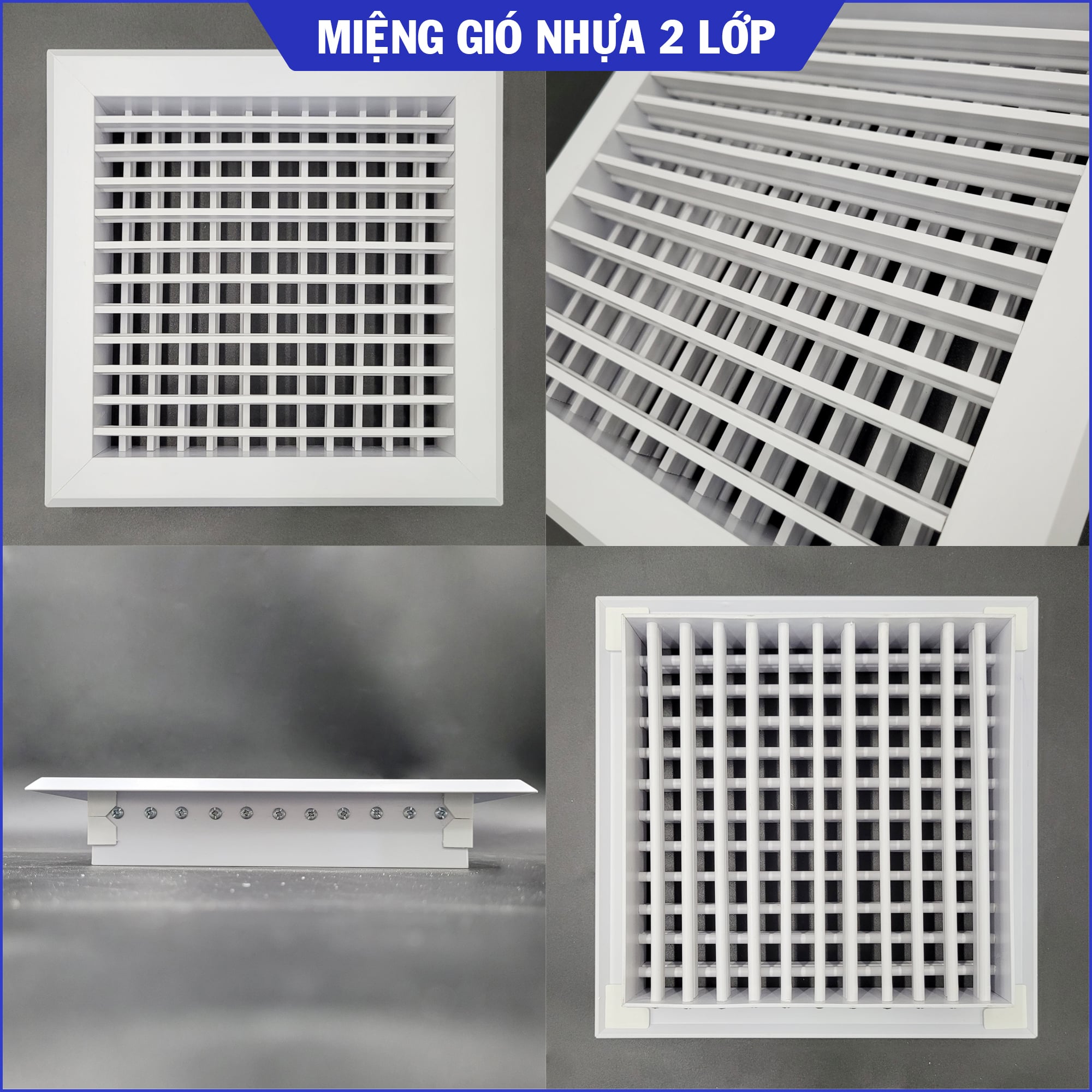 Miệng gió nhựa 2 lớp là một sản phẩm thường được sử dụng để làm miệng gió cấp/hồi cho hệ thống lạnh, làm miệng gió tươi/thải cho hệ thống thông gió trong các cơ sở, trung tâm, công trình... Với thiết kế hiện đại, kích thước, mẫu mã đa dạng, chiều dài và rộng có thể gia công theo yêu cầu đặt hàng trang trí thêm cho trần phù hợp với mọi kiến trúc giúp tăng thêm tính thẩm mỹ cho căn phòng.