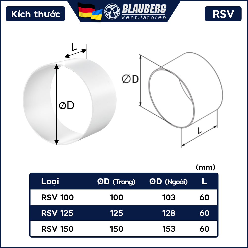 Nối ống tròn nhựa cứng ống gió BLAUBERG - RSV φ100/125/150mm