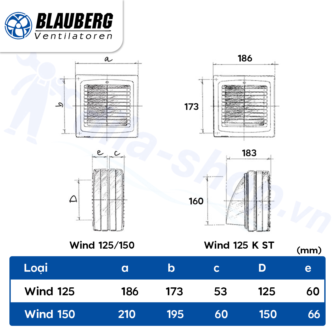 Quạt hướng trục gắn tường, trần BLAUBERG - WIND