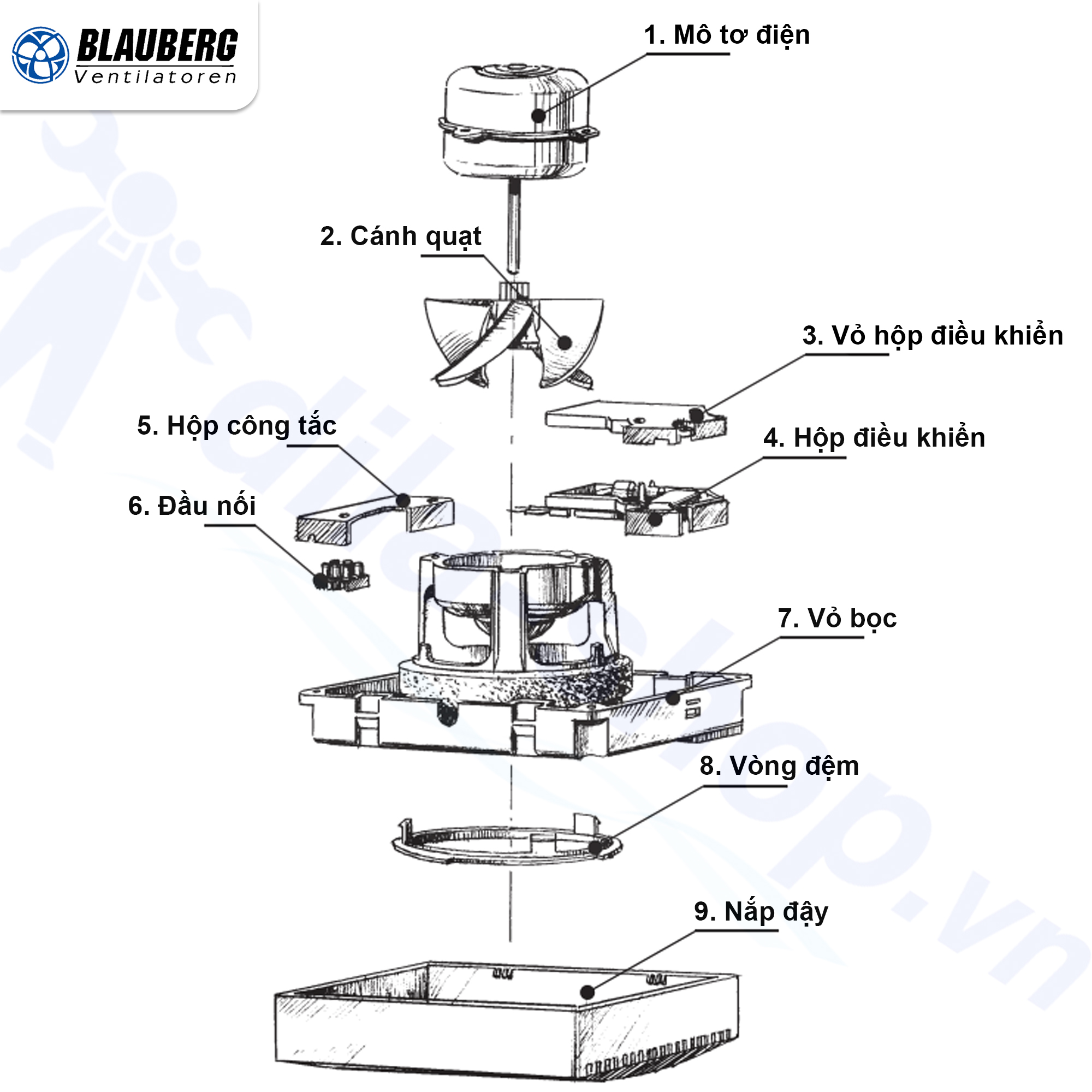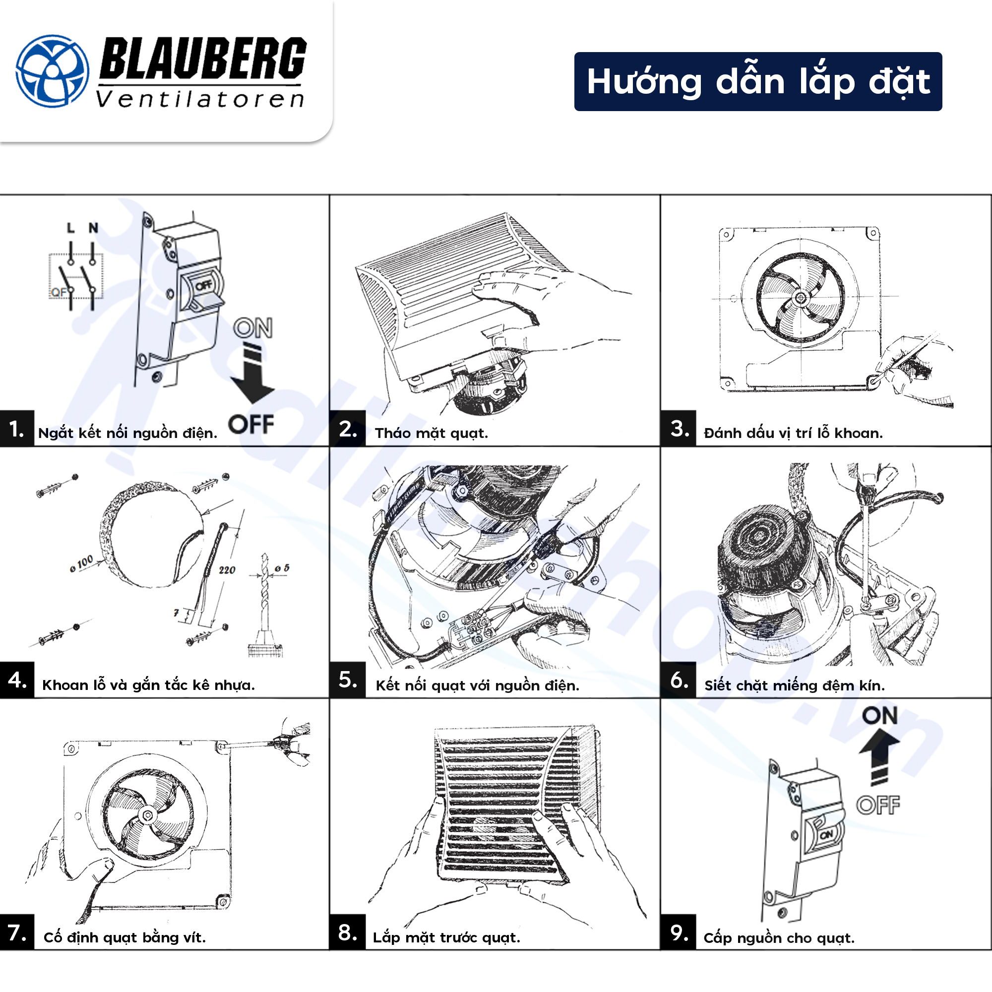 - Hướng chuyển động của không khí trong hệ thống phải khớp với hướng mũi tên trên vỏ quạt.
