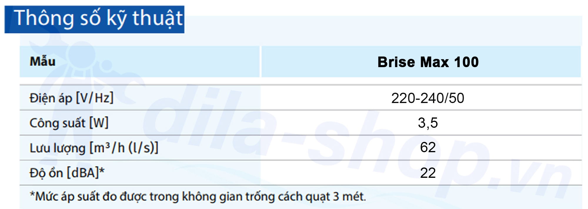Quạt Brise Max 100 được thiết kế để hút không khí thông gió cho nhà ở, căn hộ biệt thự và các cơ sở tiện ích. Quạt sử dụng để gắn tường hoặc gắn trần. Quạt được trang bị van ngăn gió ngược ngăn không khí đi ngược vào phòng khi quạt tắt.