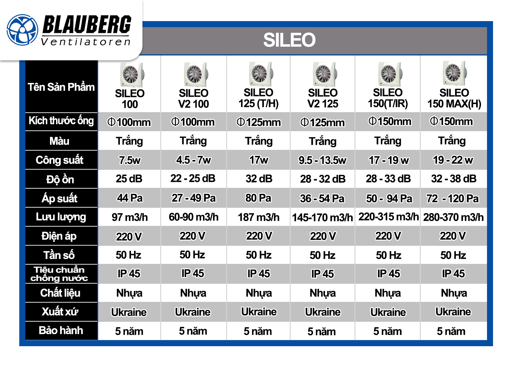 Quạt hướng trục cho phòng tắm, phòng vệ sinh BLAUBERG - SILEO