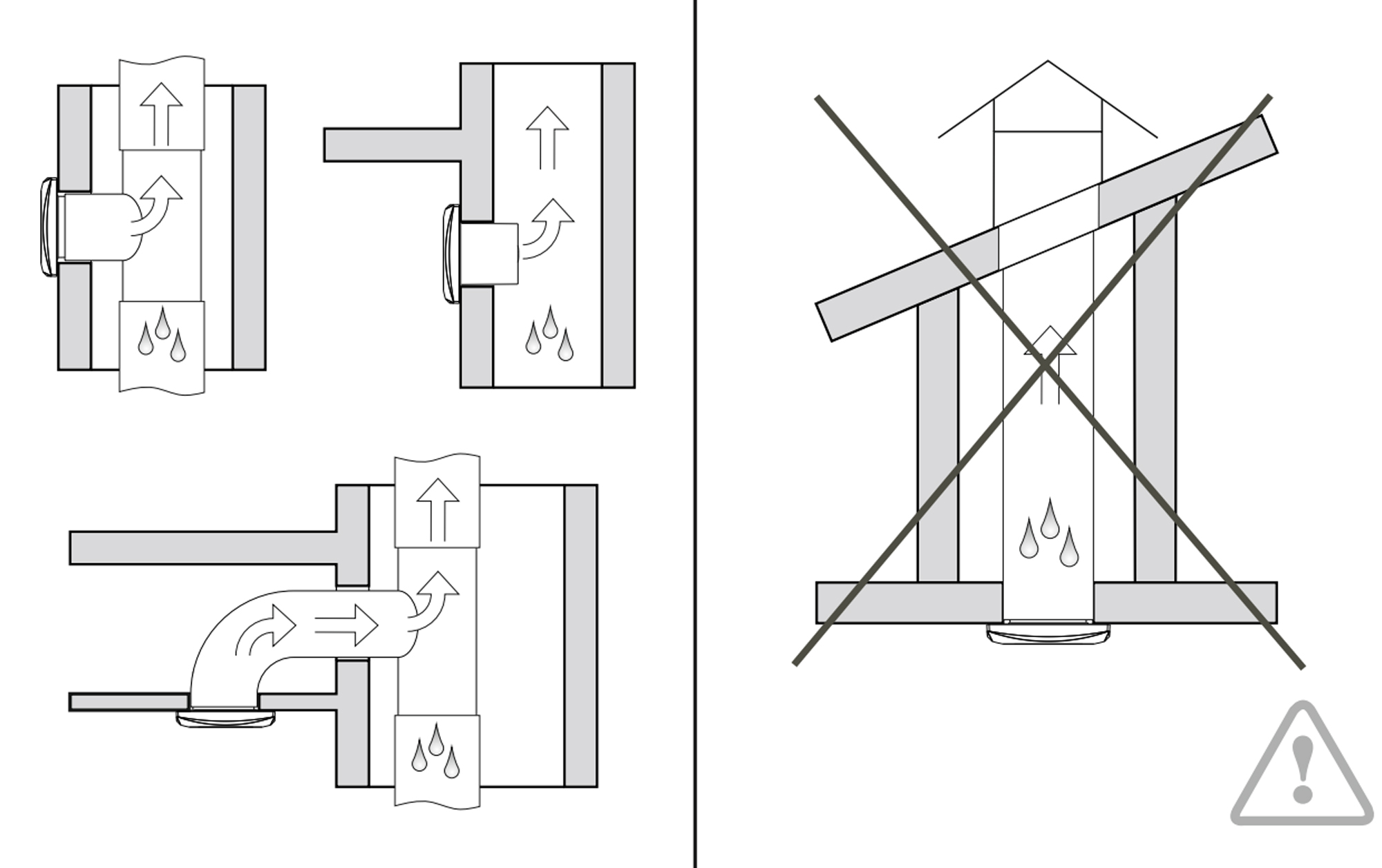 - Phải thực hiện các biện pháp phòng tránh khí gas chảy ngược vào phòng từ ống khói hoặc các thiết bị đốt nhiên liệu khác. Phải cung cấp đủ không khí để đốt cháy và xả khí thích hợp qua ống khói của thiết bị đốt nhiên liệu để ngăn ngừa hiện tượng hút ngược.