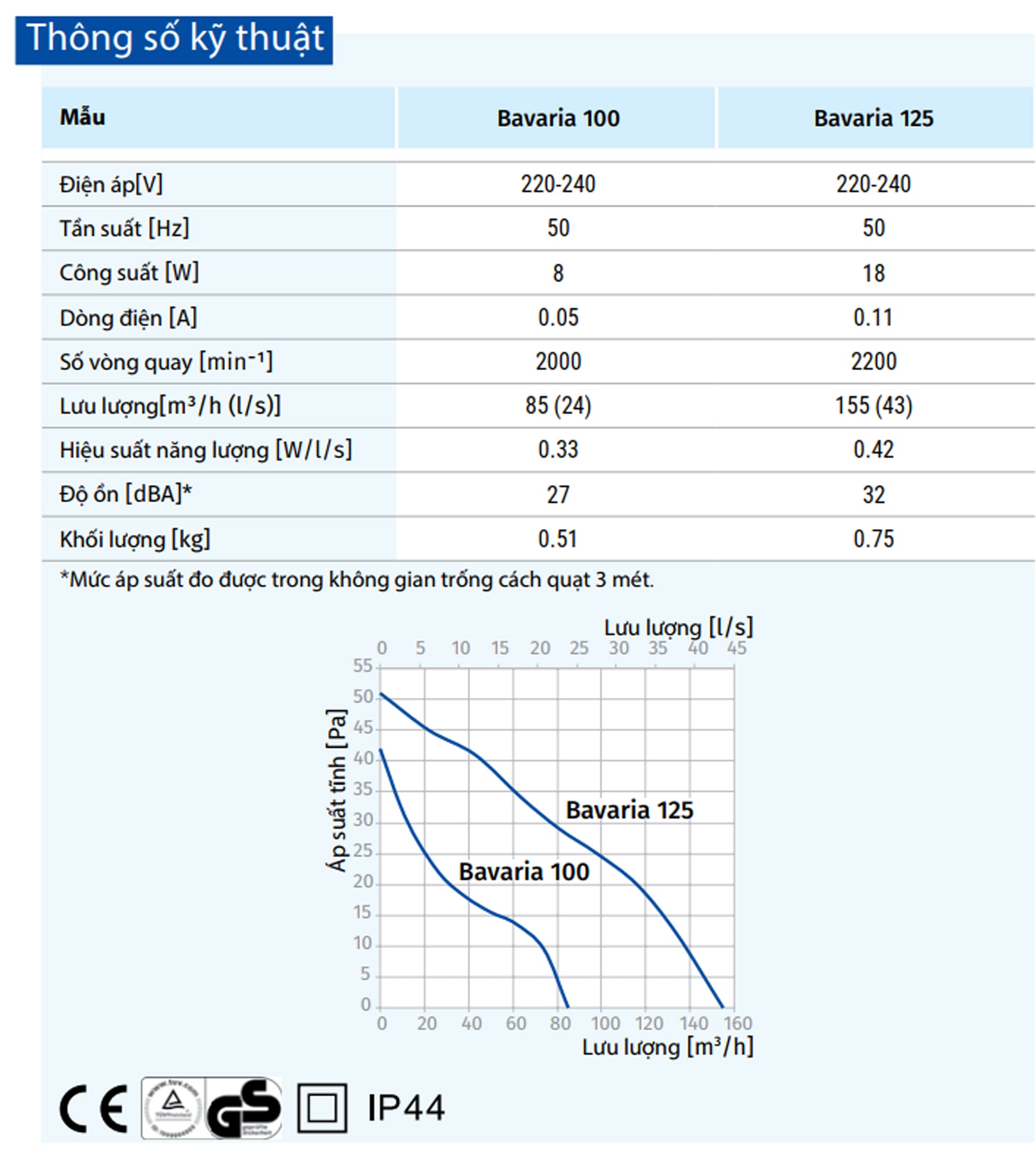Quạt hướng trục Bavaria được thiết kế để kết nối với nguồn điện xoay chiều một pha lắp trong phòng vệ sinh, phòng tắm, nhà ở, nhà hàng. Các thông số chính đã được hiển thị trên bao bì sản phẩm và/hoặc trên vỏ thiết bị. Mức độ bảo vệ khỏi các tác nhân nguy hiểm và chống nước là IP44. Quạt phù hợp hoạt động ở nhiệt độ môi trường xung quanh từ +1 °C đến +40 °C. Sản phẩm là thiết bị điện loại II (220-240V, 50Hz/220V, 60Hz) hoặc loại III (12V/50Hz) và không cần nối đất.